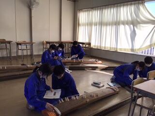 お琴の基本的な奏法と「虫づくし」を学習しました。お琴の音色と余韻が響いていました