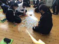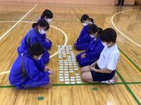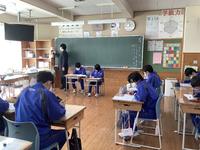 1時間目に、1組2組合同で数学の授業を行いました。今まで学んだ比例・反比例の知識をもとに「視力6.0」に挑戦しました。ランドルト環の大きさを変えたり、遠くから視力検査を行ったりしました。