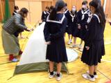 本日、第5校時と第6校時に防災学習を行いました。この防災学習は、毎年、自然災害発生時における避難所運営において、生徒が支援者として行動できる実践的態度を養うことを目的として、ときがわ町役場の総務課の方を講師にお迎えし実施しています。今回も実際にダンボールベッドや災害用テントの組み立てや発電機の操作、簡易トイレの設置や処理体験を行いました。また、炊き出し訓練では、アルファー米の試食をしました。