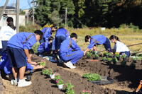 1・2年生を中心に300株の花を植えました。全員が一生懸命協力して植えました!