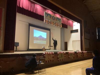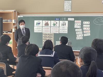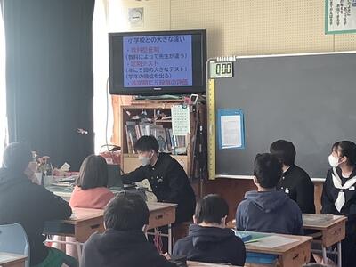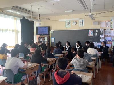 3年生の代表が 明覚小学校6年生に 中学校について説明しました。