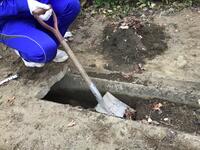 校舎と校庭の間の側溝をきれいにしてくれています。