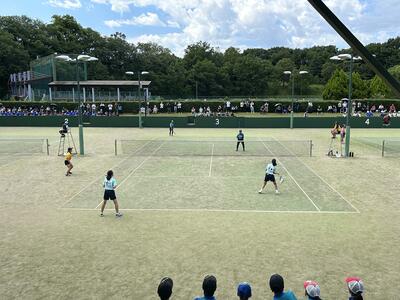 それぞれのペアの力をチームの力にする団体戦。コートのすぐ後ろに他のメンバーが控えて後押ししてくれます。