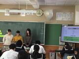 4校時にときがわ町とこのジェラートを共同開発した十文字学園の先生と学生の皆さんが来校し、開発にまつわる話を1年生にしてくれました。